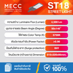 โคมถนน Streetlight LED 30W 5700K 4,500lm รุ่น ST18 แสงขาว
