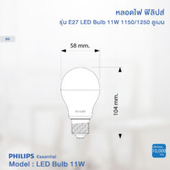 PHILIPS ESSENTIAL LED BULB 11W E27 A60 3000K/6500K (ฟิลิปส์ หลอดไฟแอลอีดี ชนิดหลอดบัล์บ 11W ขั้วE27 ทรงA60 แสงวอร์ม/ขาว รุ่น Essential)