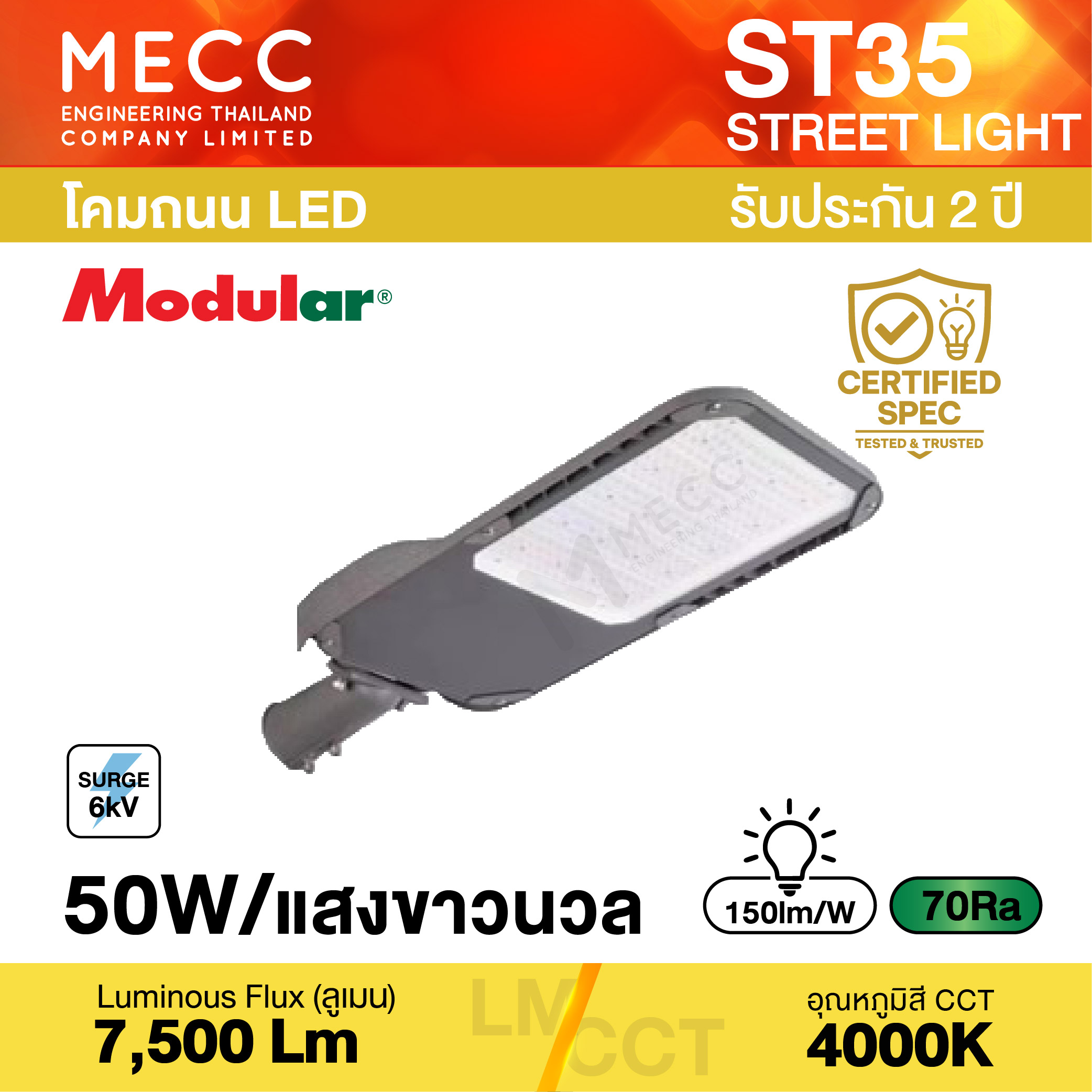 Luminous Flux : ฟลักซ์การส่องสว่าง (Lumen) : 7,500lm
