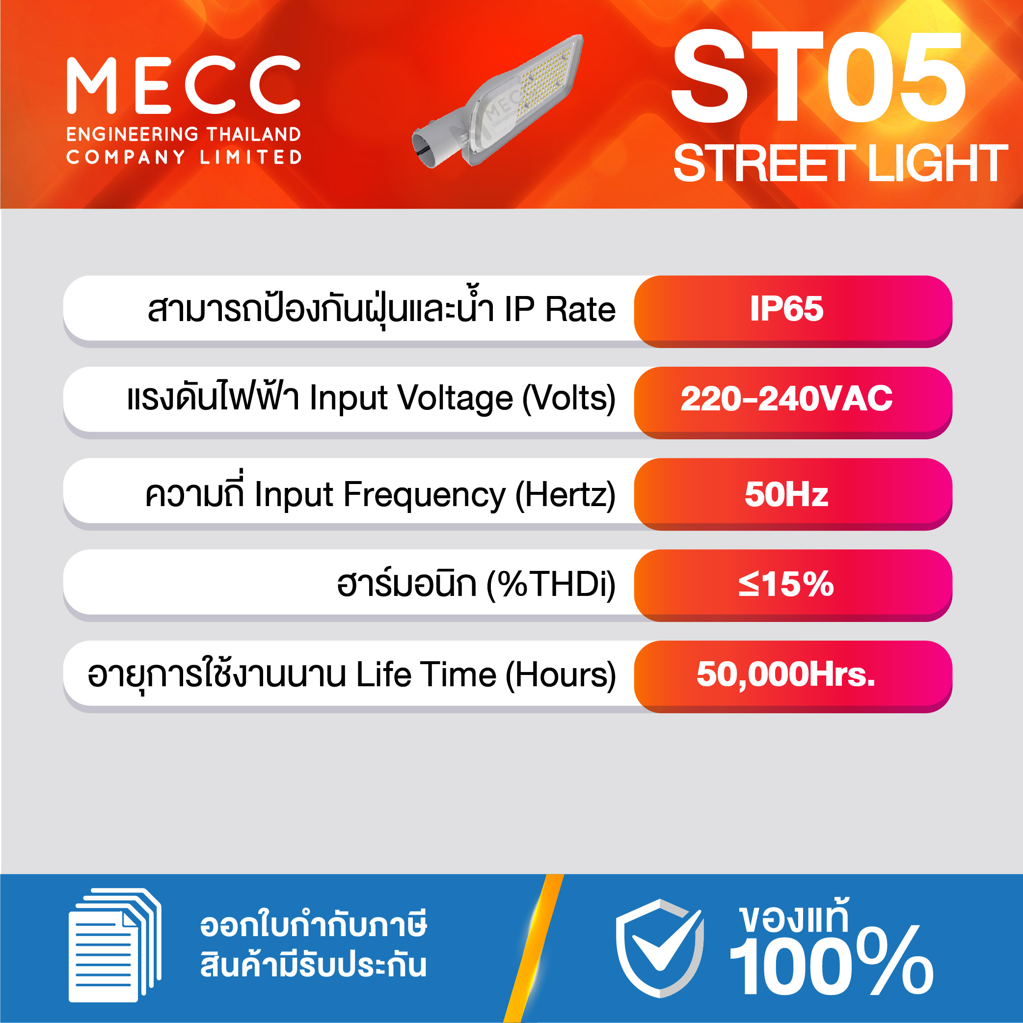 โคมถนน Streetlight LED 50W 6500K 6,000lm รุ่น ST05 แสงขาว
