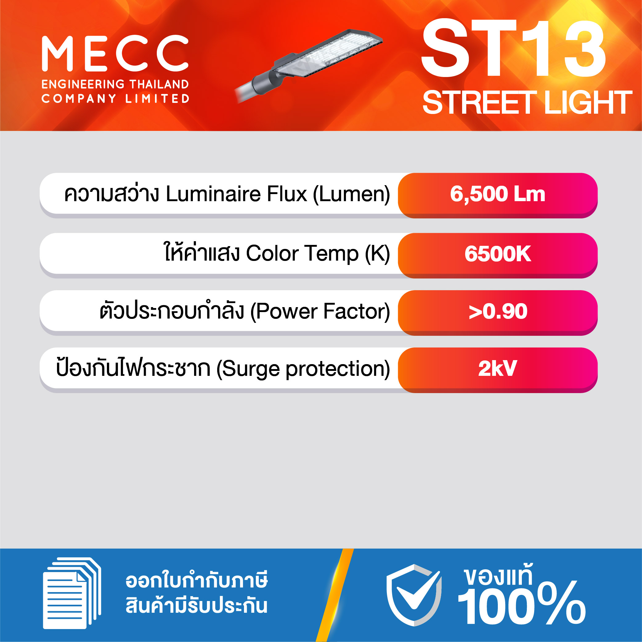 โคมถนน Streetlight LED 50W 6500K 6,500lm รุ่น ST13 แสงขาว
