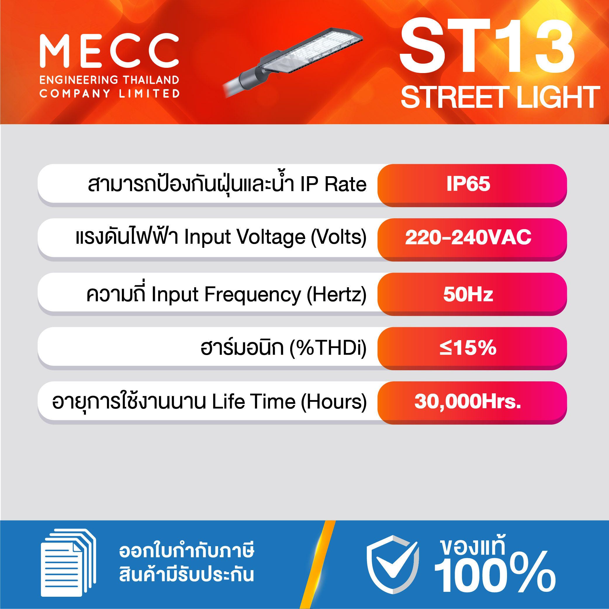 Input Voltages : แรงดันไฟฟ้า : 220-240V