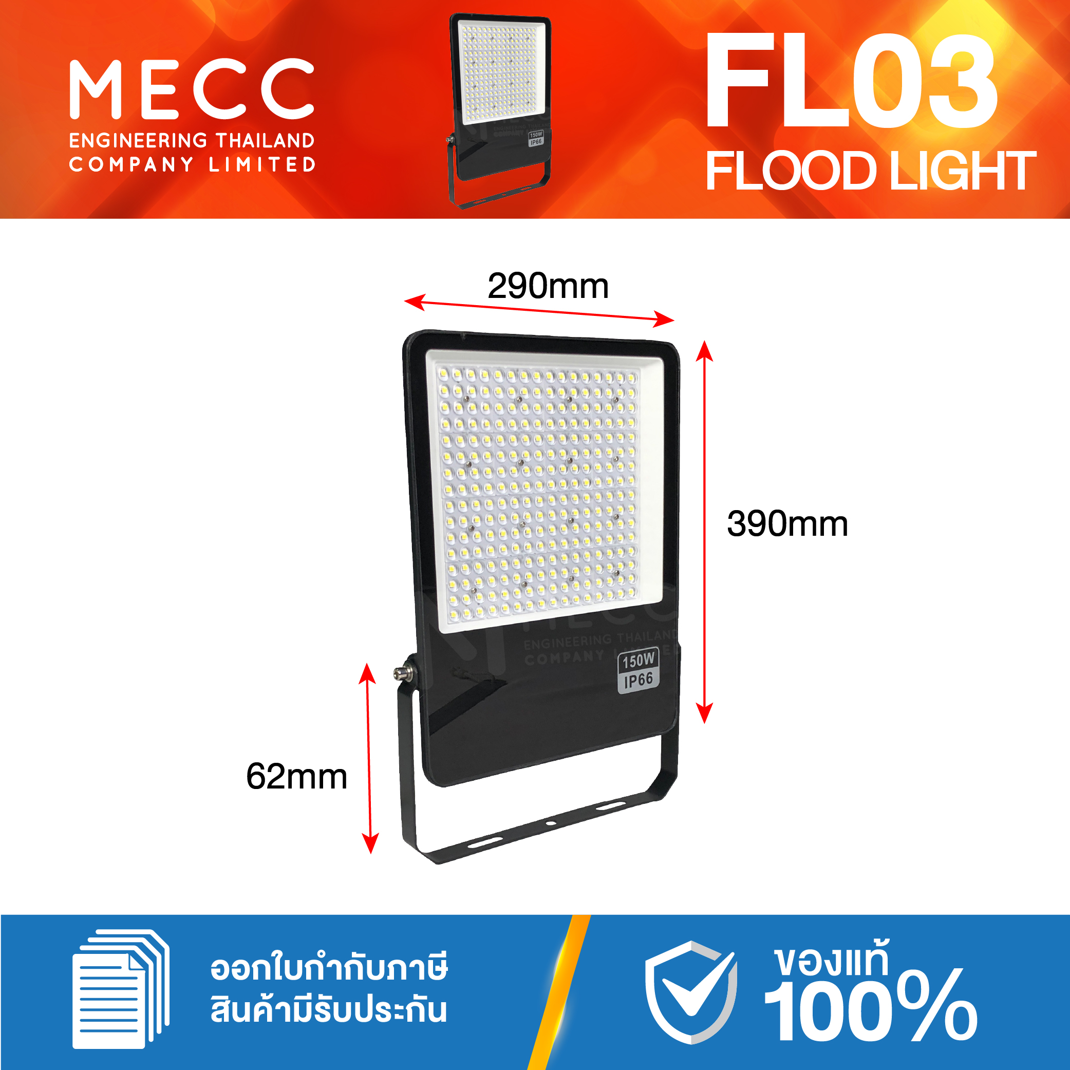 โคมฟลัดไลท์ Floodlight LED 150W 5700K 16,500lm รุ่น FL03 แสงขาว