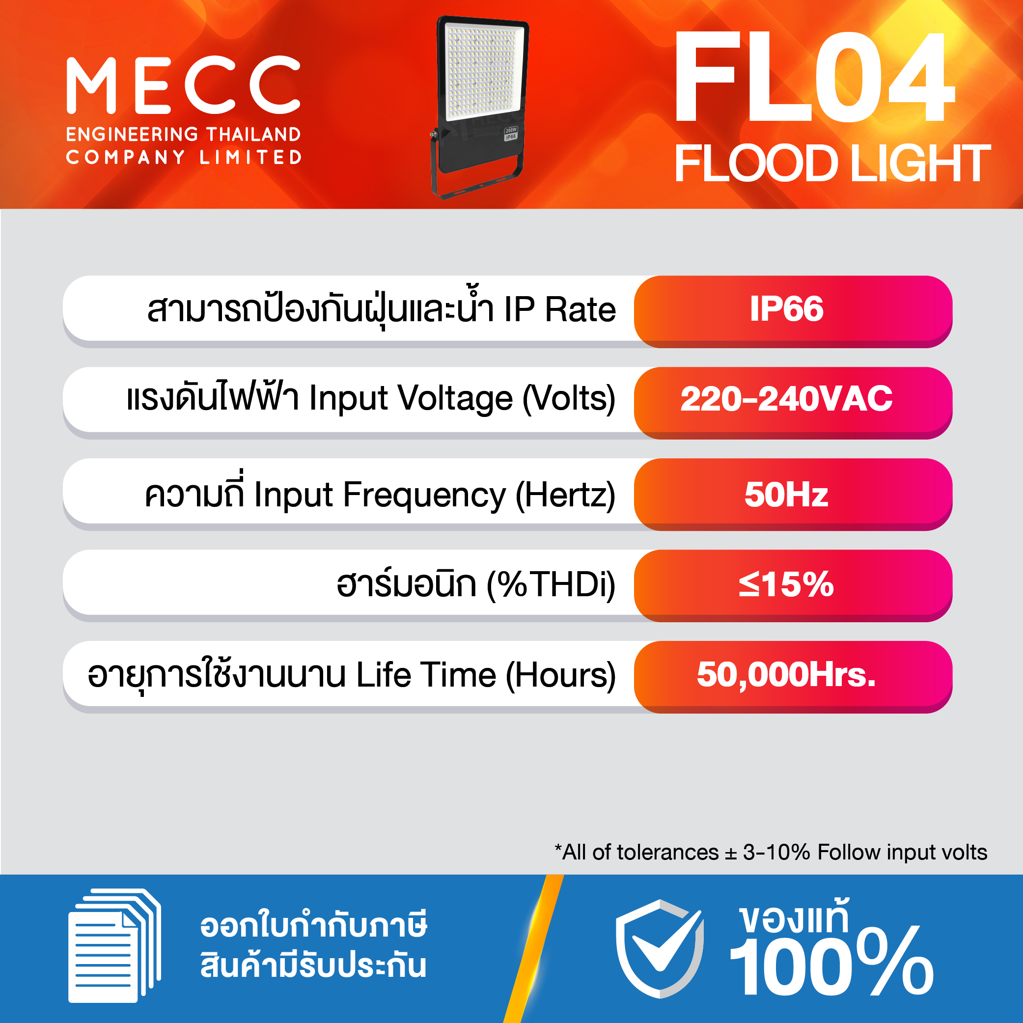 Input Voltages : แรงดันไฟฟ้า : 220-240V