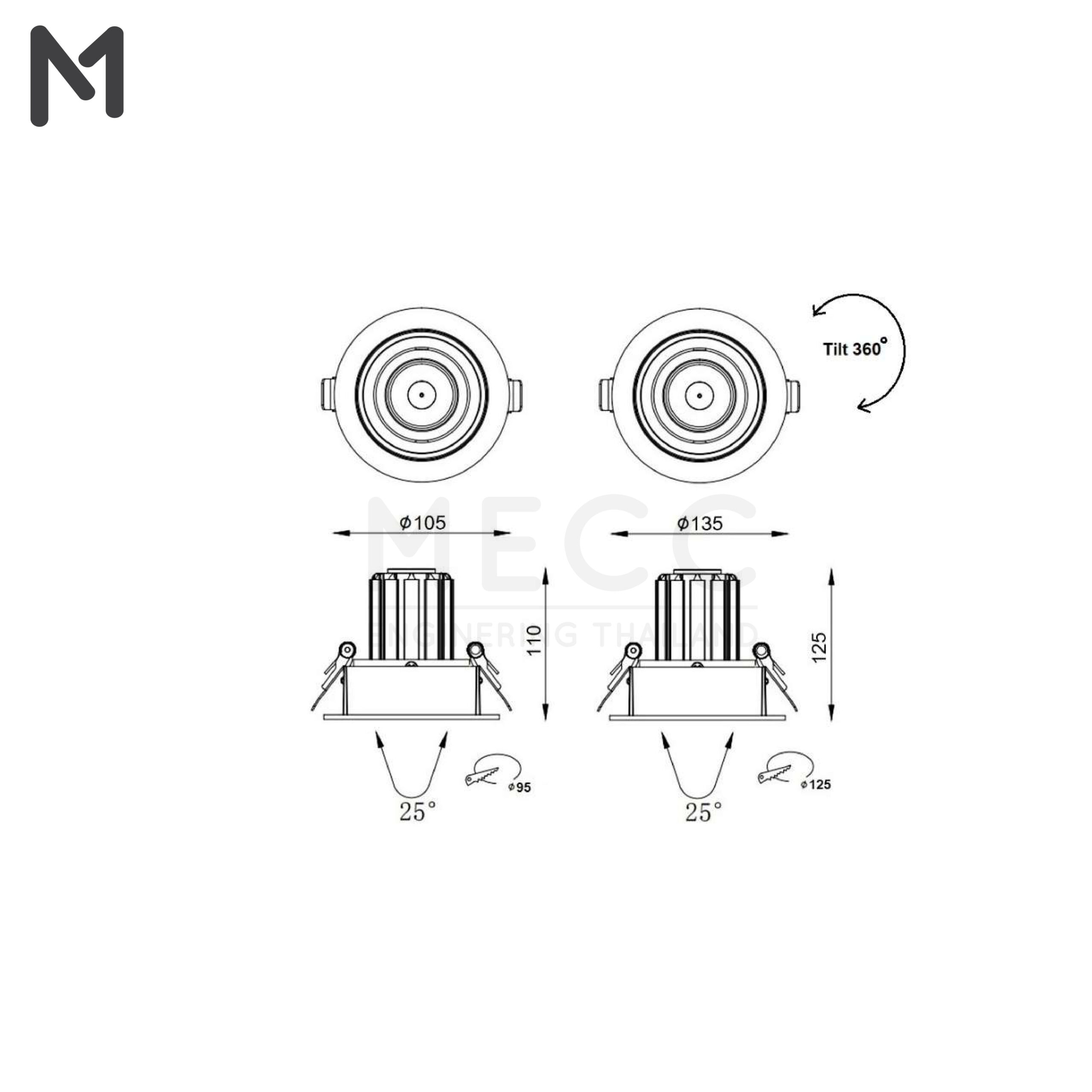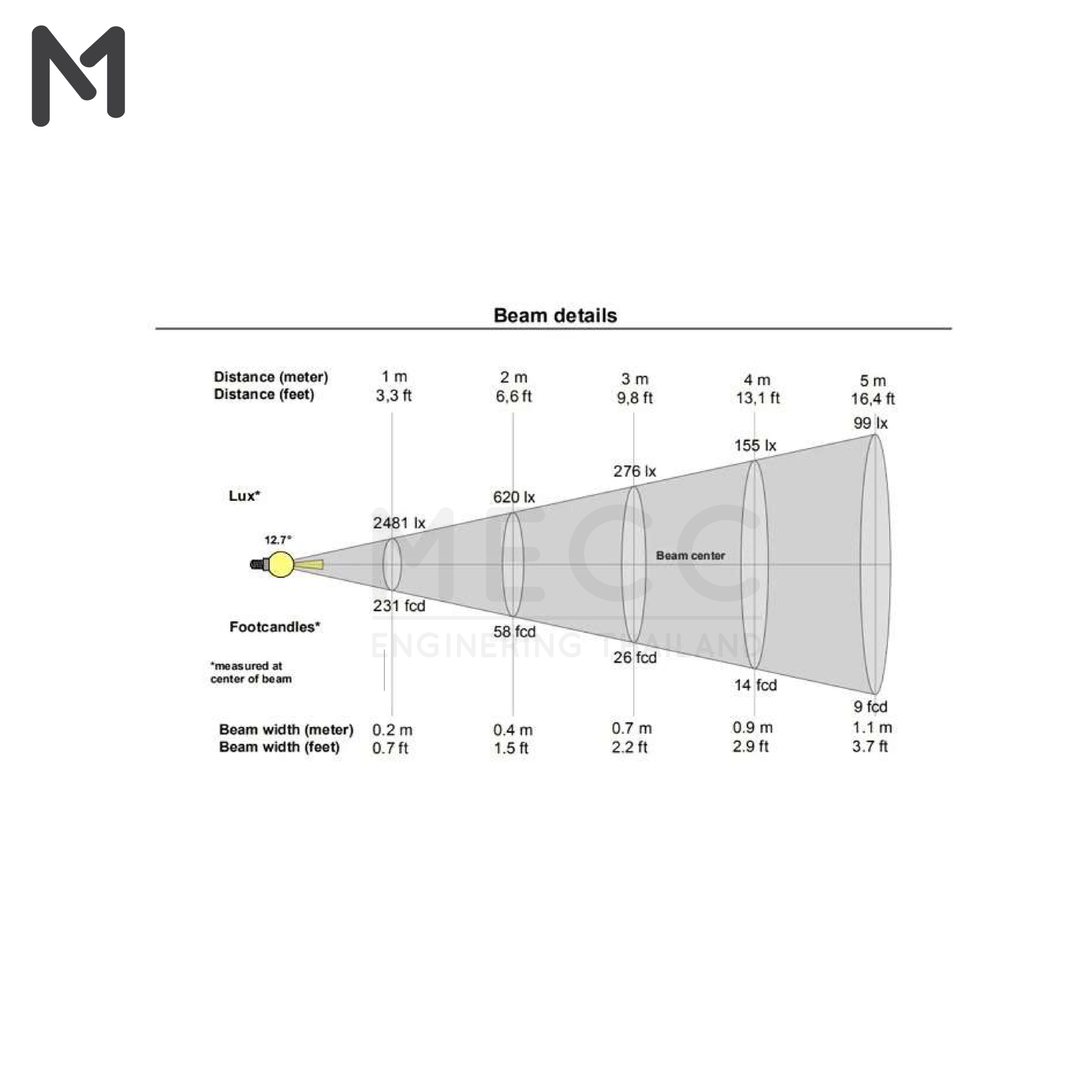 เลือกมุมกระจายแสงได้ 24 / 36 / 60 องศา
