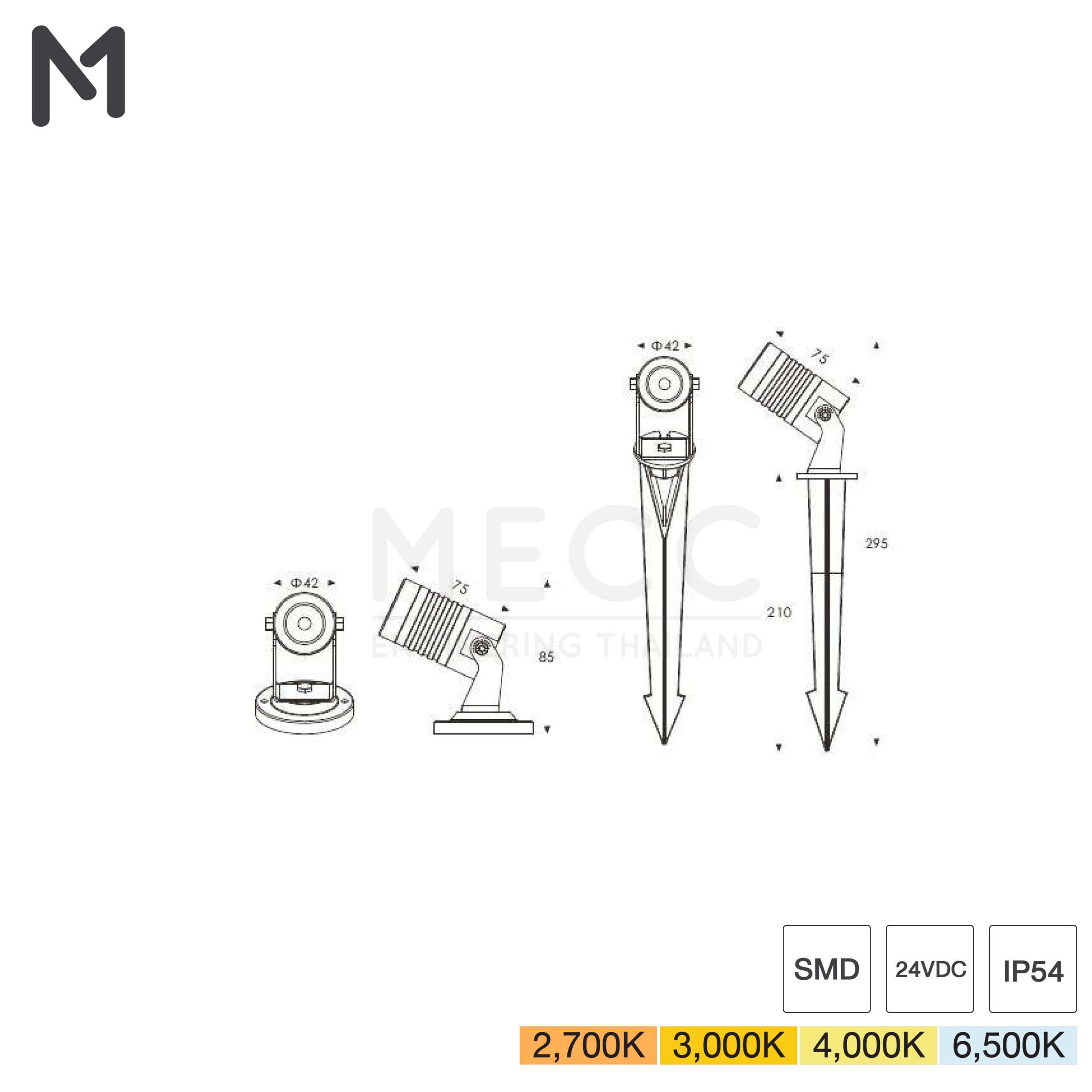 มีให้เลือกมุมกระจายแสง 15 / 24 / 45 / 60
