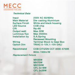 โคมไฟแอลอีดีดาวน์ไลท์ฝังฝ้า 4.5 นิ้ว ขนาด 15 20 25 30 W สำหรับงานโครงการ