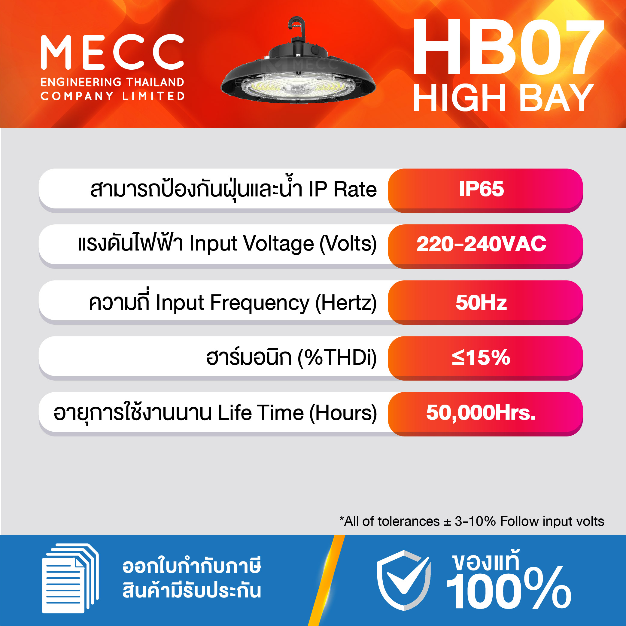 Input Voltages : แรงดันไฟฟ้า : 220-240V