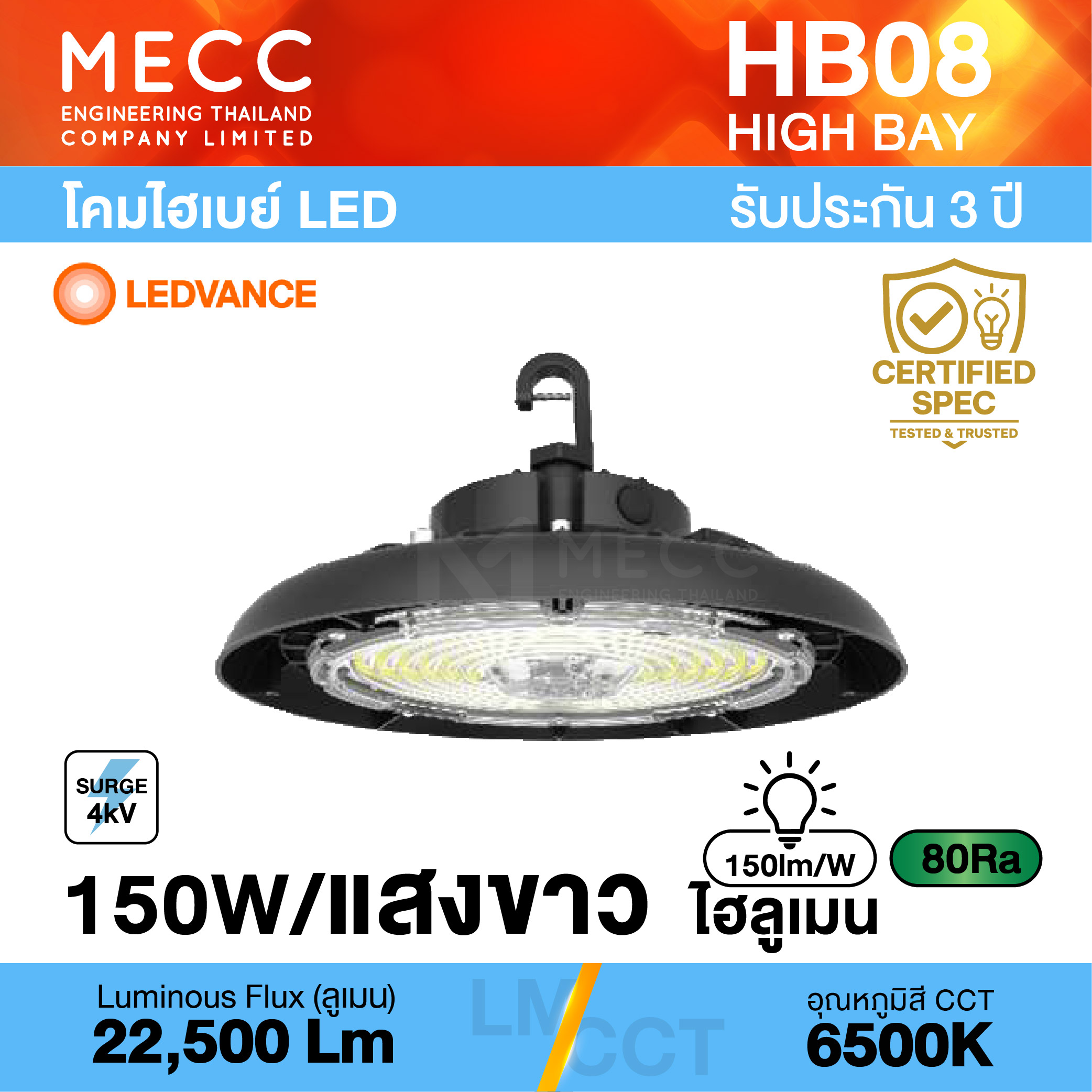 โคมไฮเบย์ Hi-Bay LED 150W 6500K 22,500lm รุ่น HB08 แสงขาว