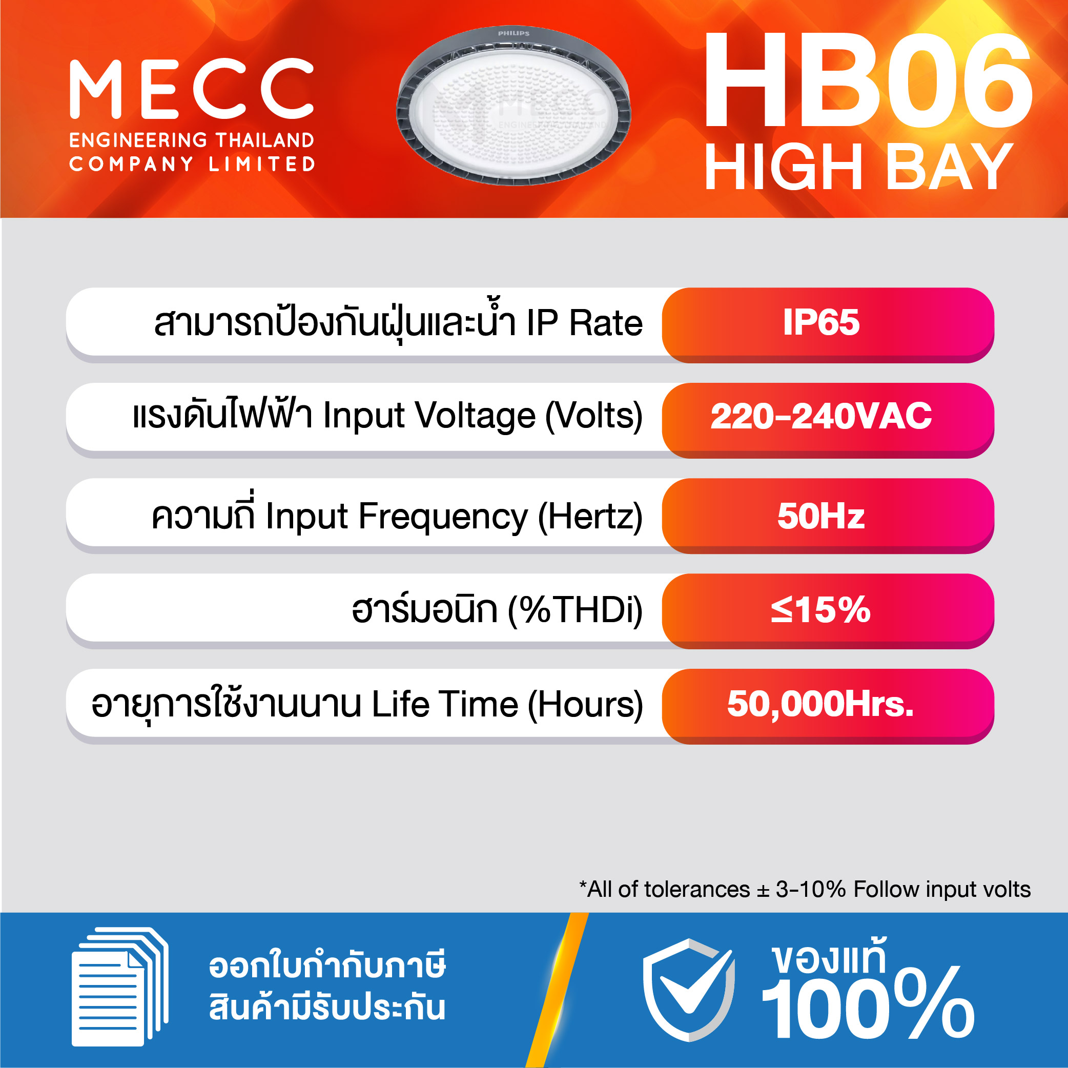 Input Voltages : แรงดันไฟฟ้า : 220-240V