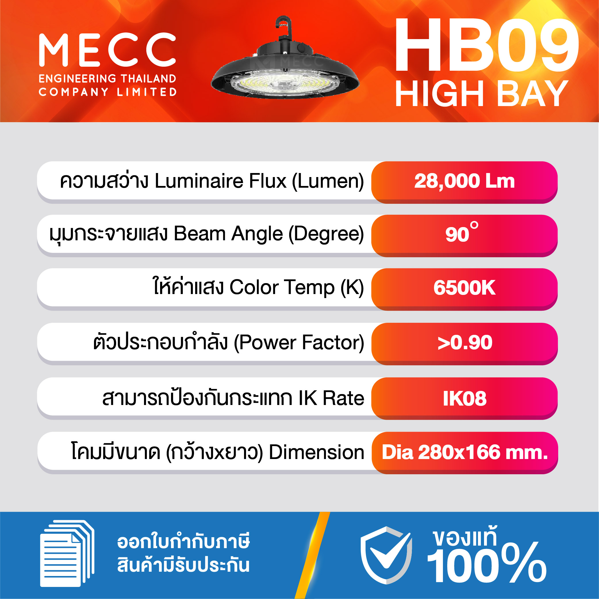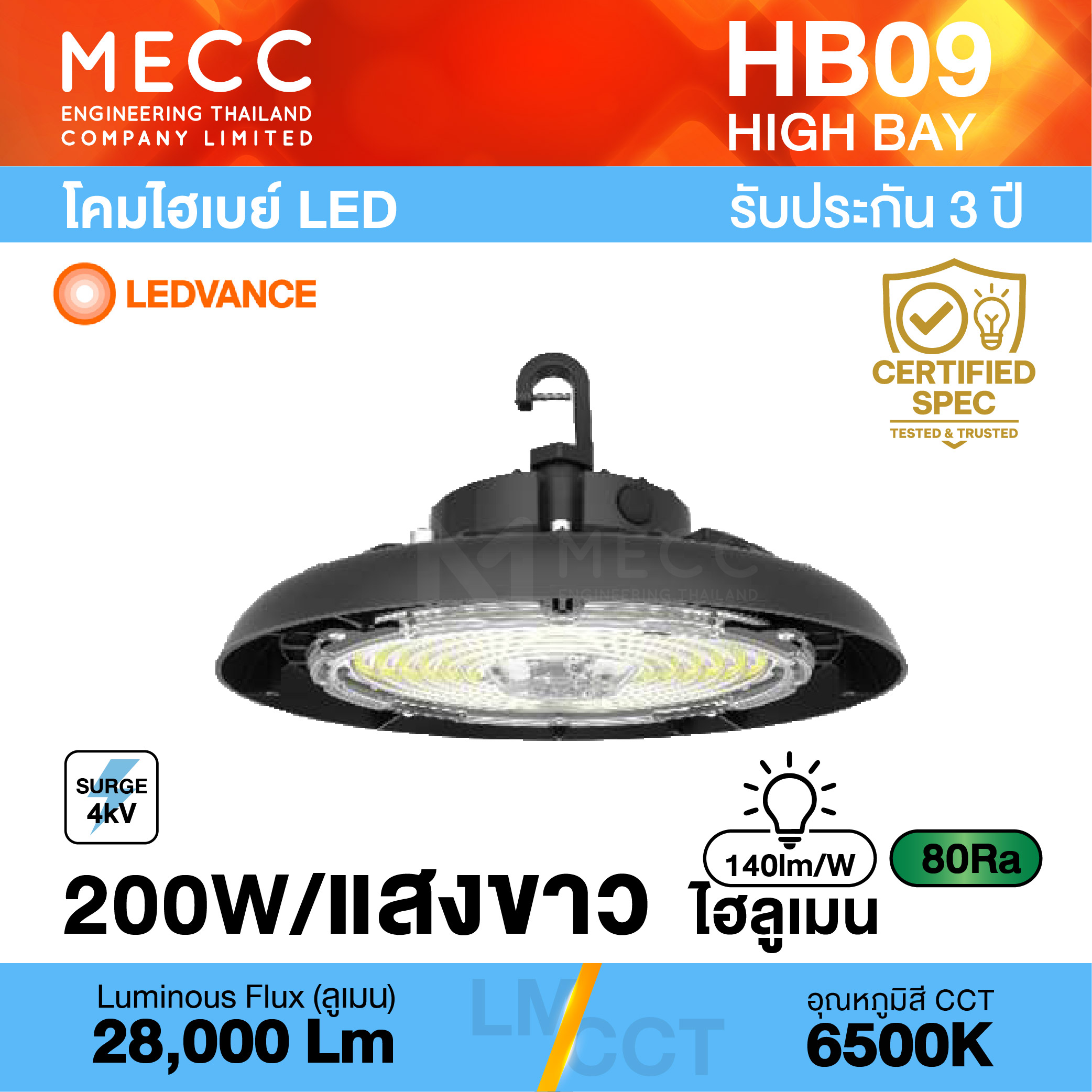 Luminous Flux : ฟลักซ์การส่องสว่าง (Lumen) : 28,000lm