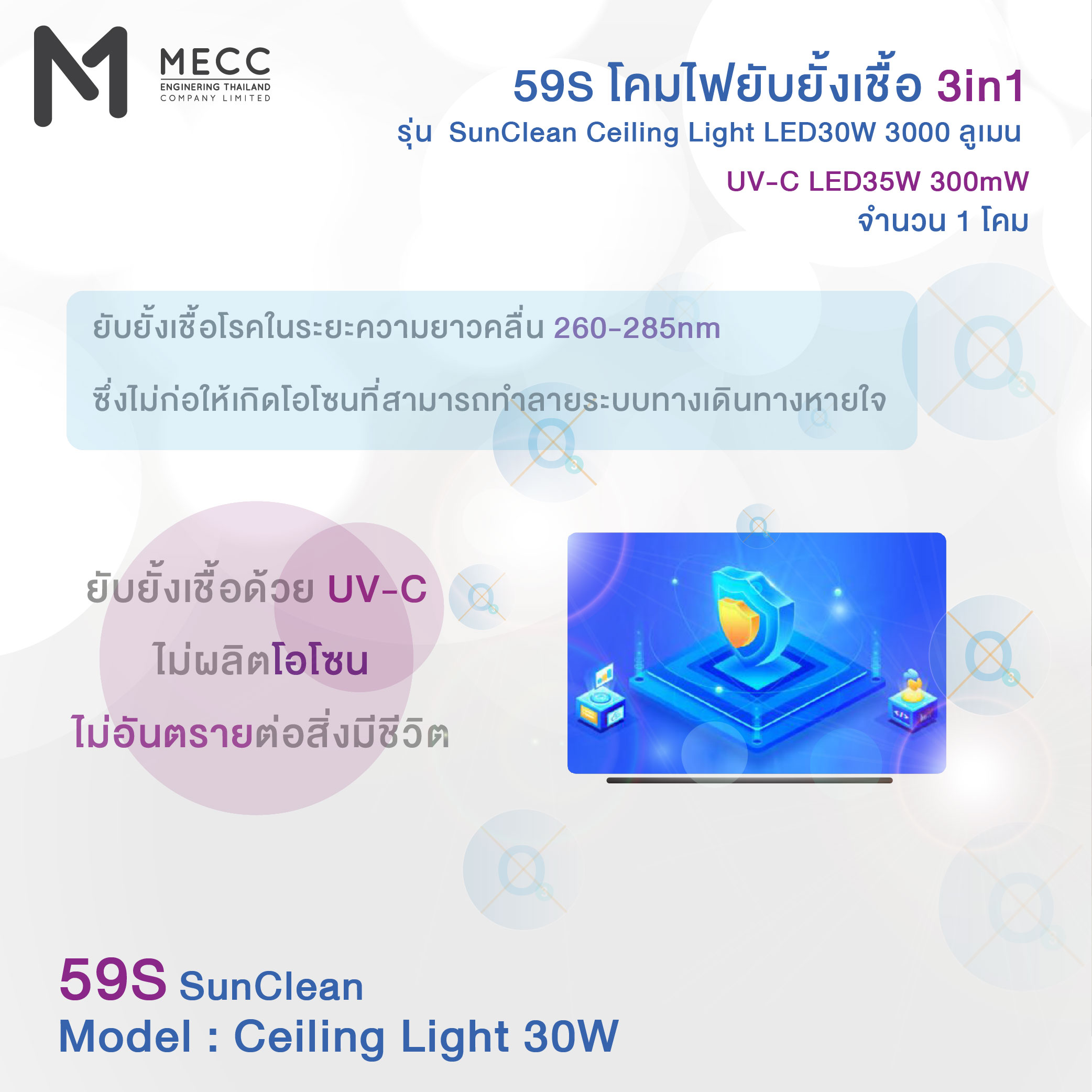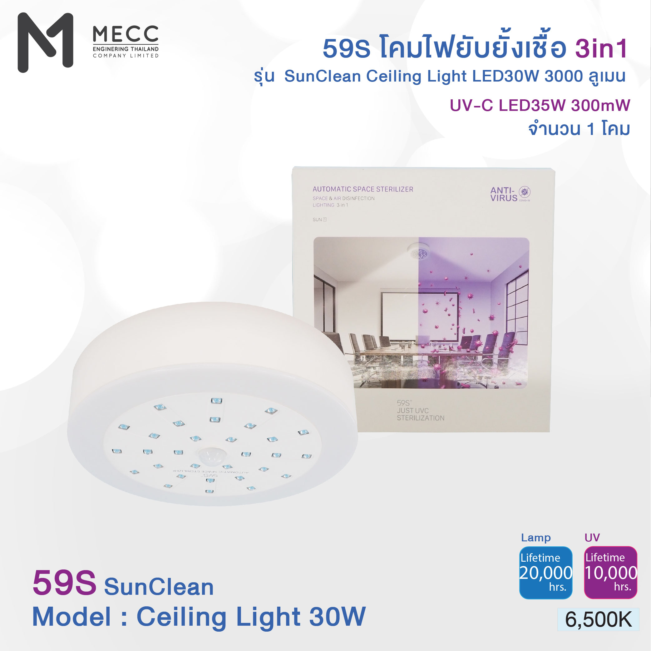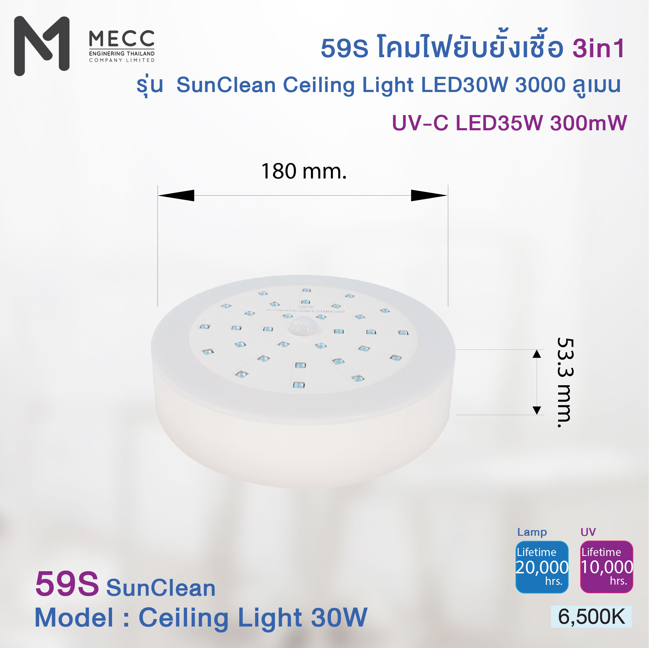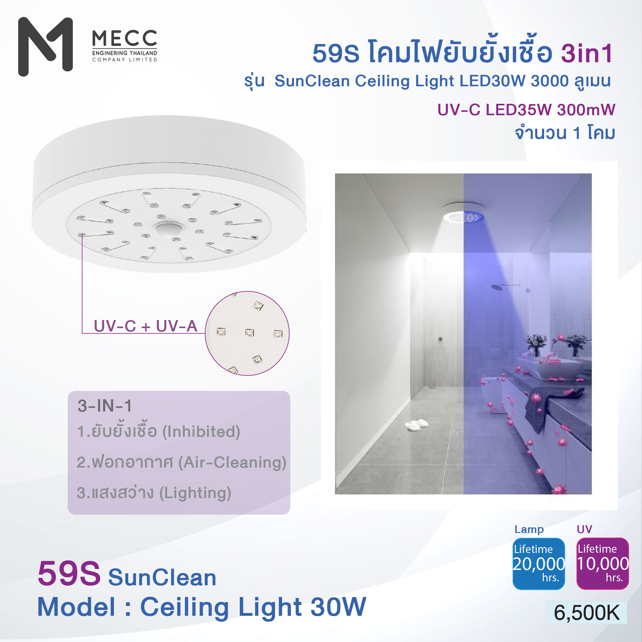 59S CEILING LIGHT INHIBITED 3IN1 (SUNCLEAN LIGHTING) 6500K 3000lm. LED30W / UV-C LED35W