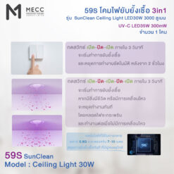 (59S โคมไฟติดเพดานยับยั้งเชื้อ 3IN1 แสงขาว 3000ลูเมน LED30วัตต์ / ยูวีซีLED35 วัตต์)