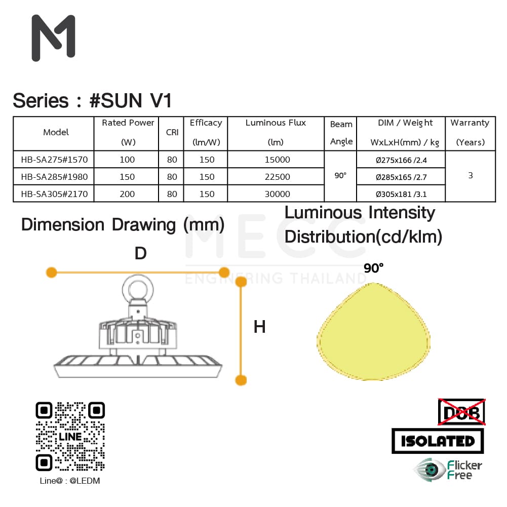Power (วัตต์) : 100W,150W,200W