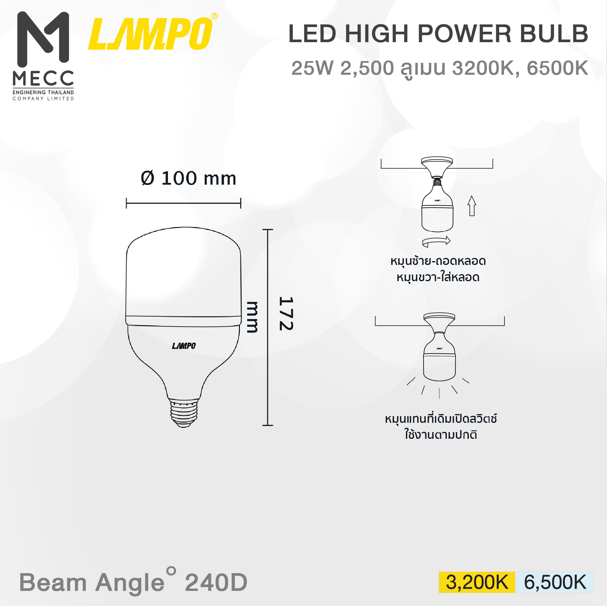 (หลอดไฟ ชนิดหลอดบับล์ แอลอีดี ไฮพาวเวอร์ 25 วัตต์ 2500ลูเมน)