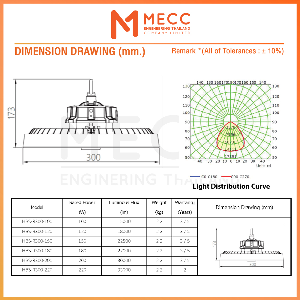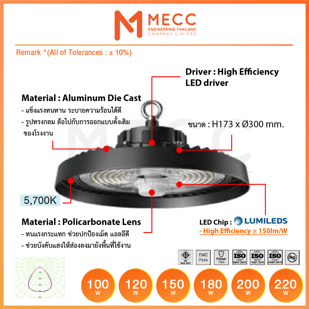 CCT , CRI : 5700K, >80Ra (Option: 70Ra)