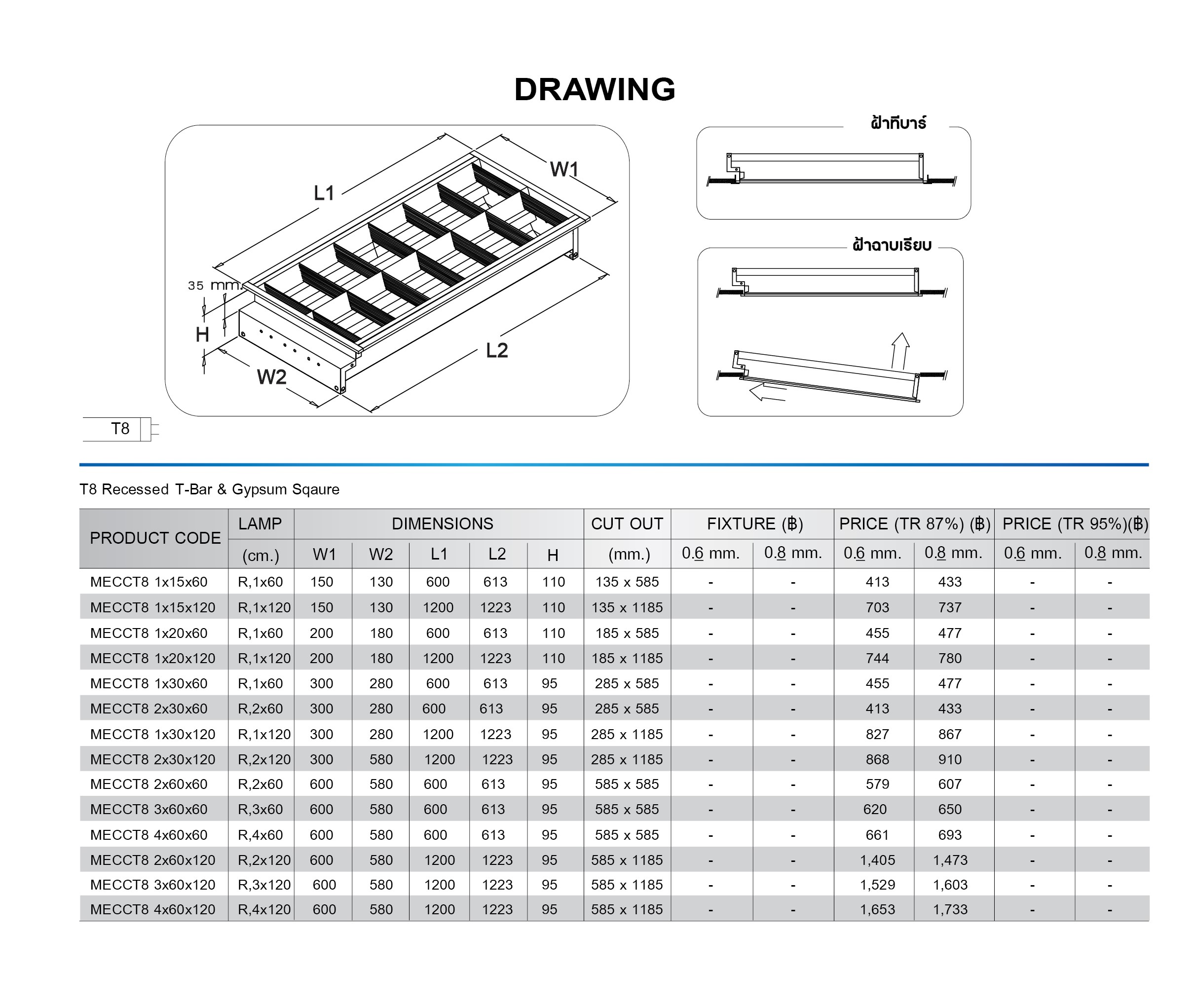 Lamp : หลอดไฟแอลอีดี T8 (G13) มาตรฐาน มอก. 1955-2551 หรือ