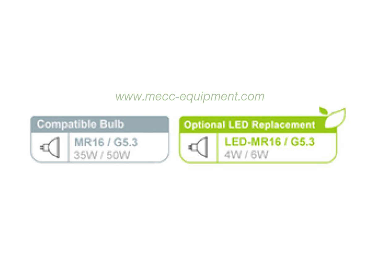 - Diffuser : Thermal shock resistant borosilicate glass lens