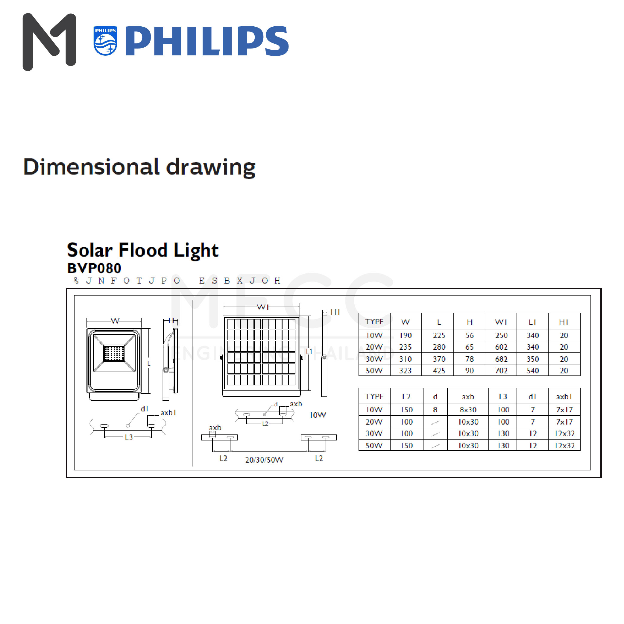 PHILIPS BVP080 Flood light Solar LED 10-50 W (โคมไฟสาดแสงโซลาร์เซลล์แอลอีดี รุ่น BVP080 10-50 วัตต์)