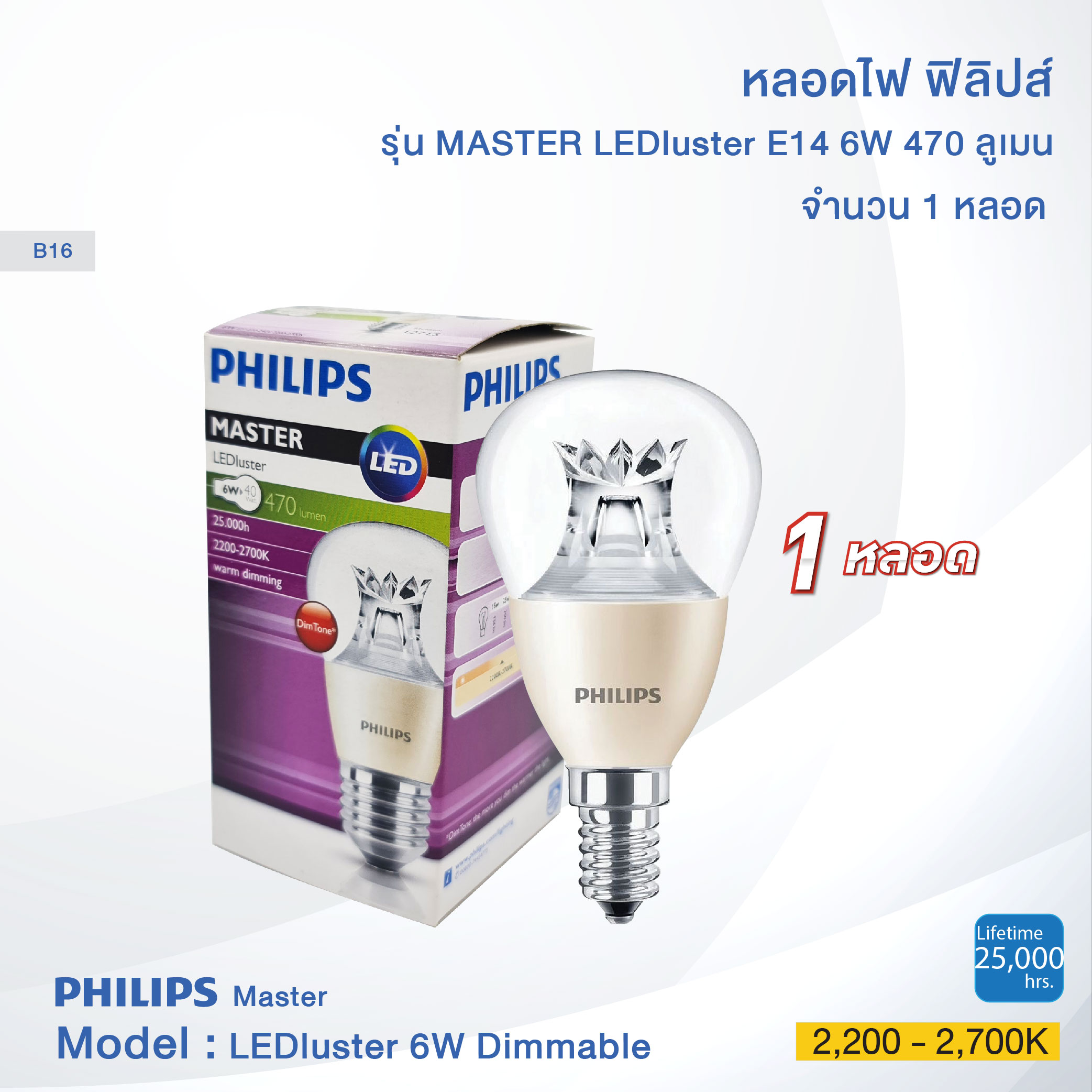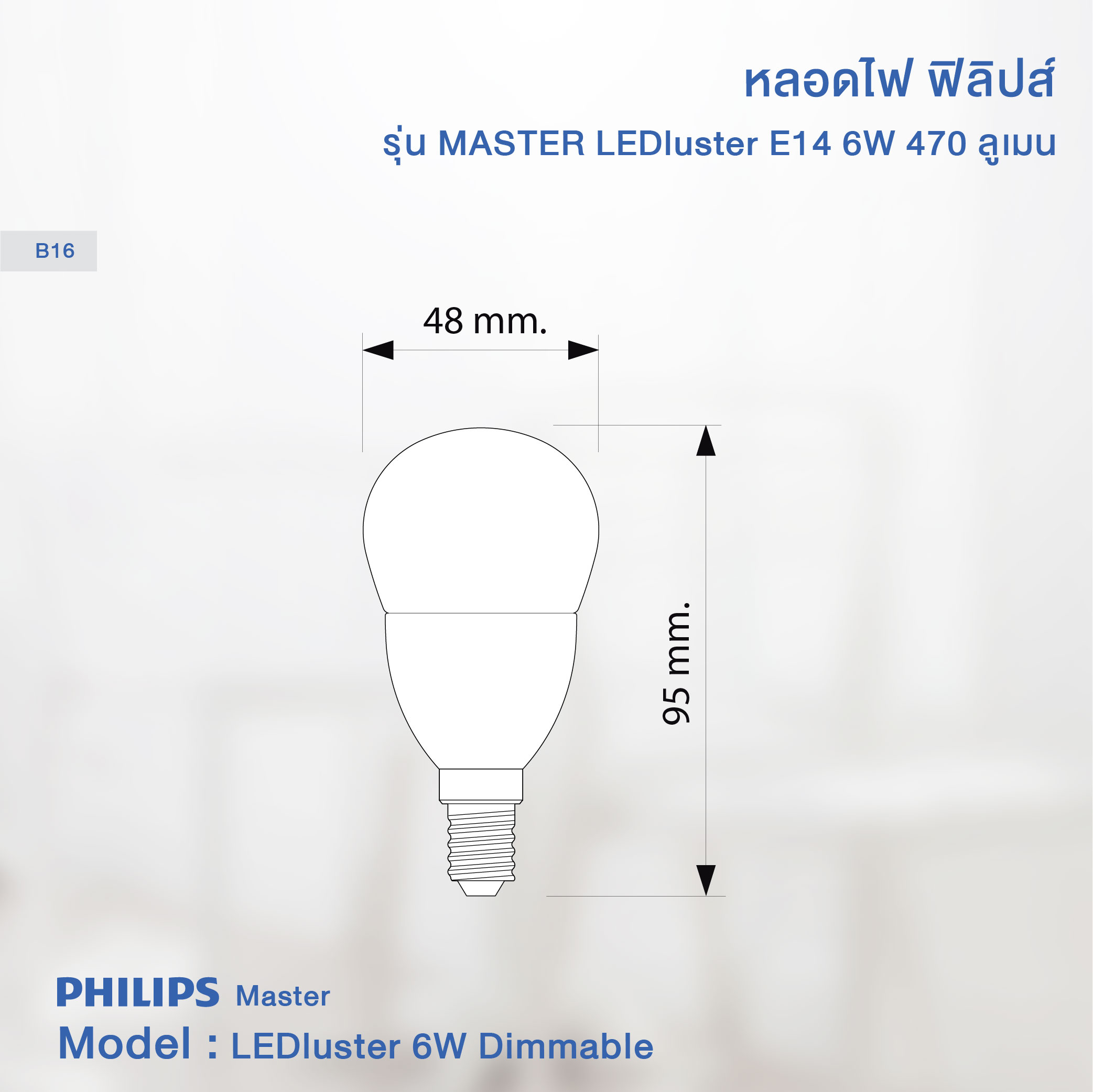 (ฟิลิปส์ หลอดไฟMaster ชนิดหลอดลัสเตอร์ 6W ขั้วE14 ทรงP48 แสงวอร์ม *ปรับหรี่ได้*)