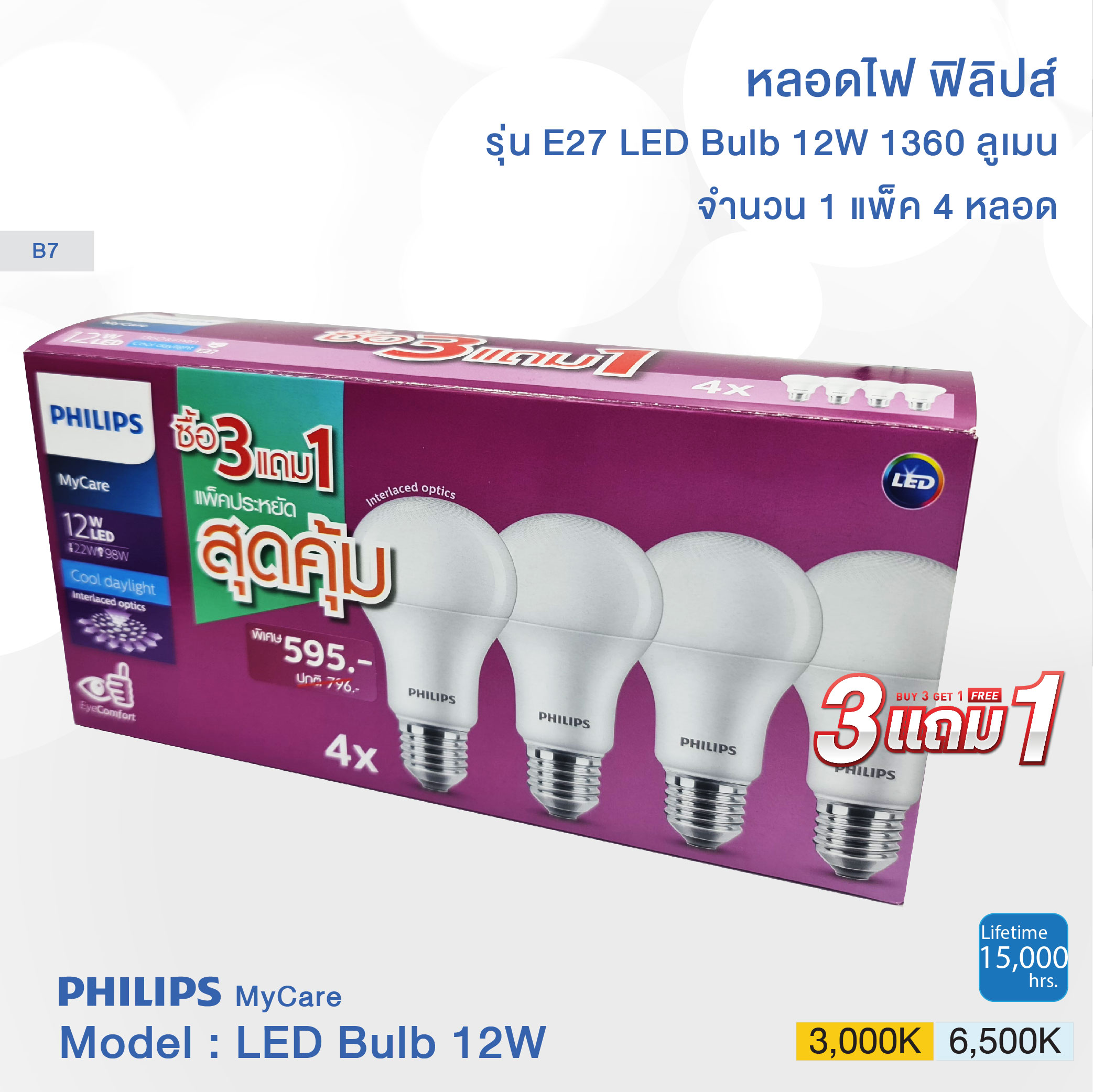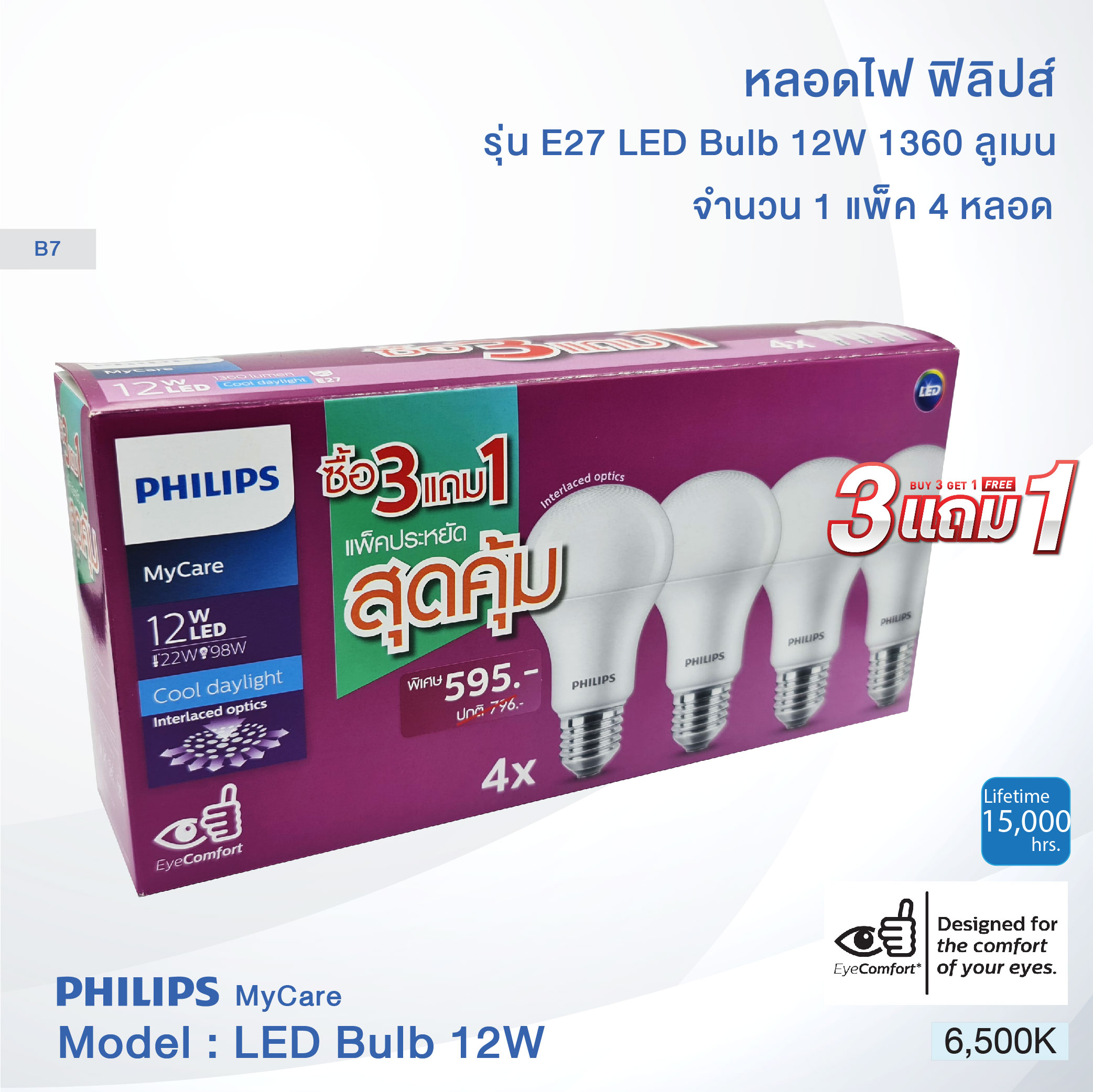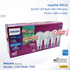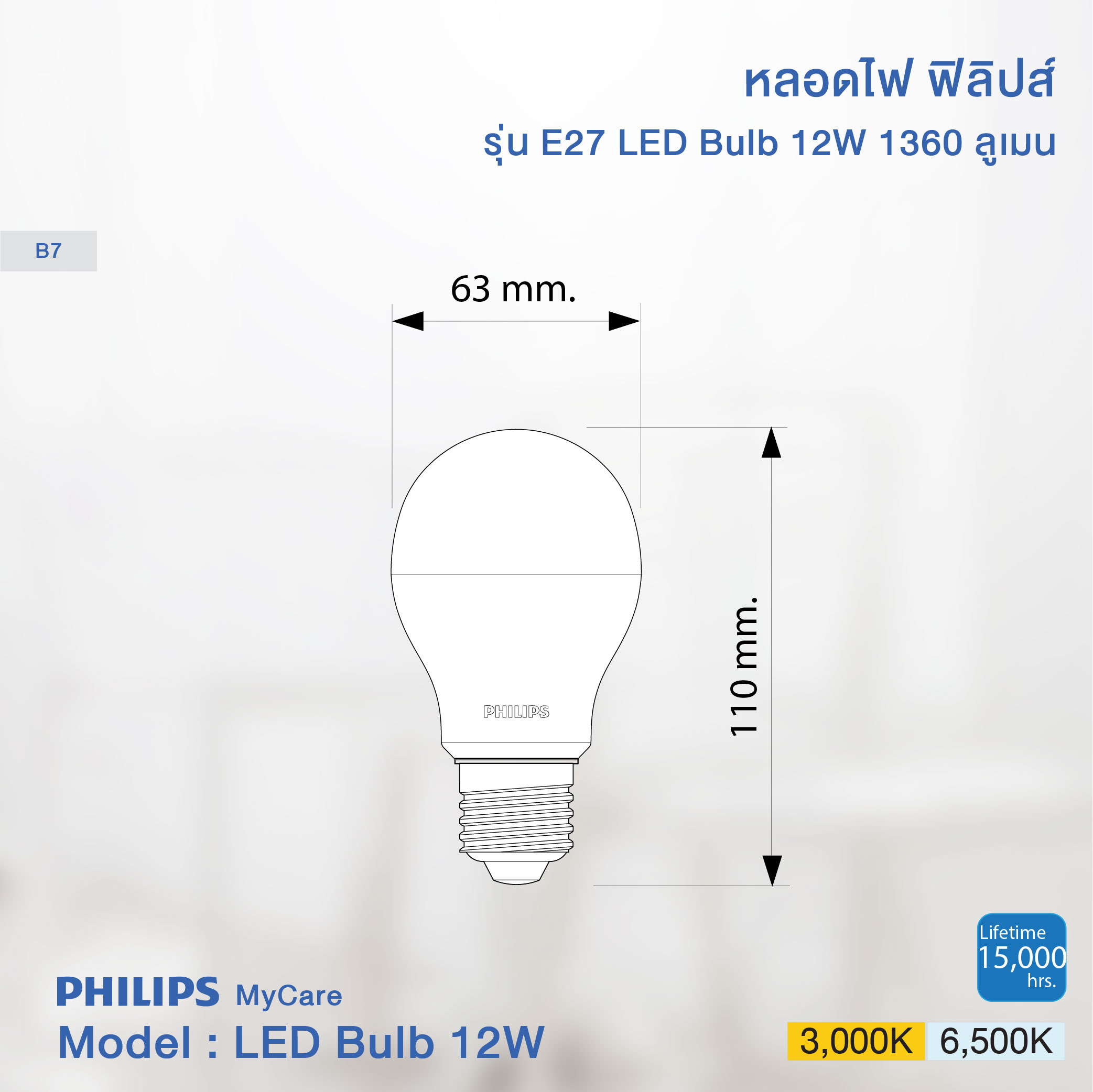 (ฟิลิปส์ หลอดไฟ ชนิดหลอดบัล์บ 12W ขั้วE27 ทรงA60 แสง วอร์ม/ขาว รุ่น MyCare )