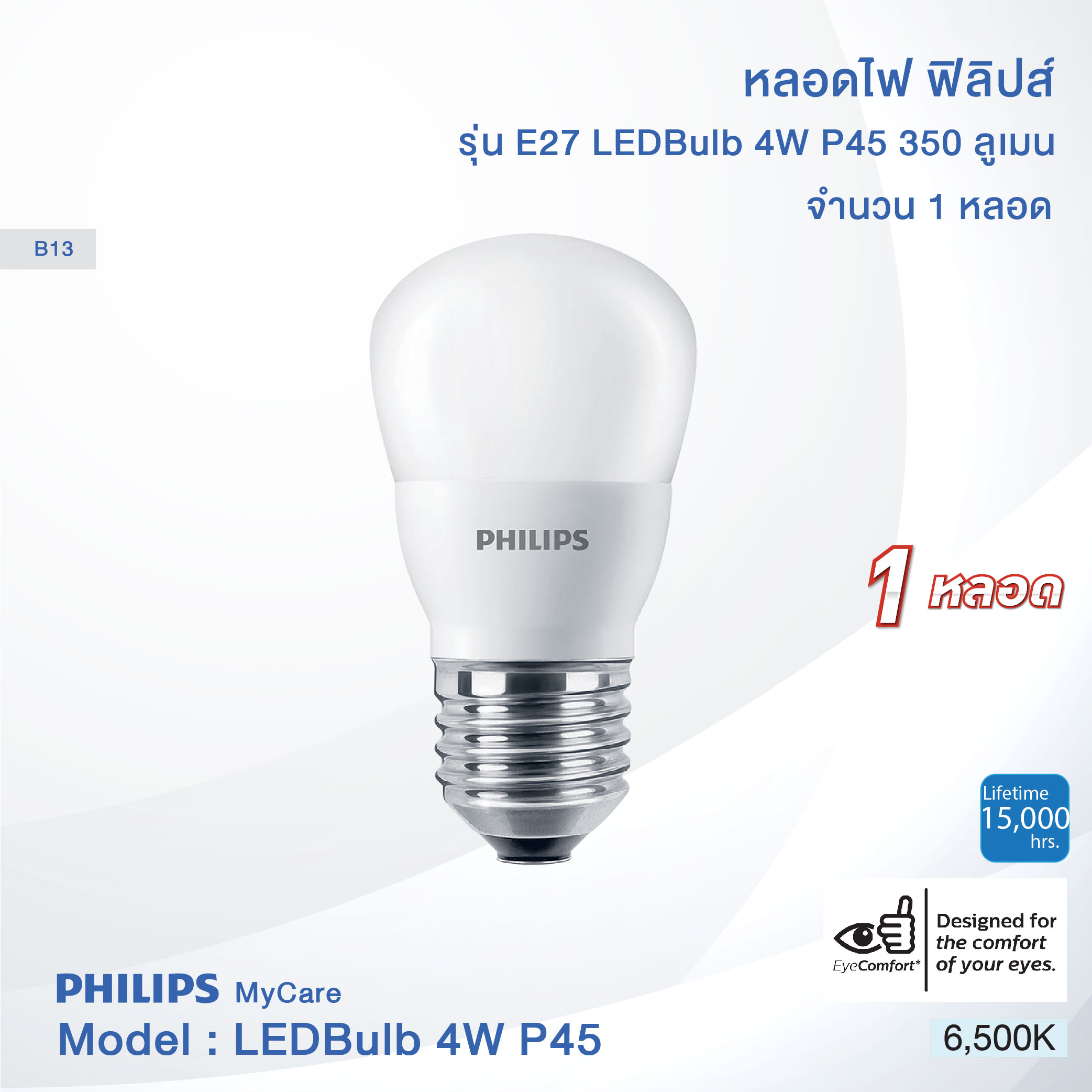 (ฟิลิปส์ หลอดไฟ ชนิดหลอดบัล์บ 4W ขั้วE27 ทรงP45 แสง วอร์ม/ขาว รุ่น MyCare)
