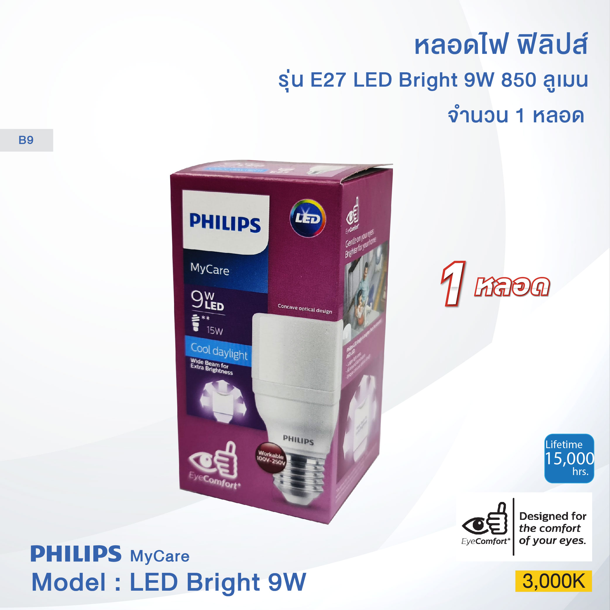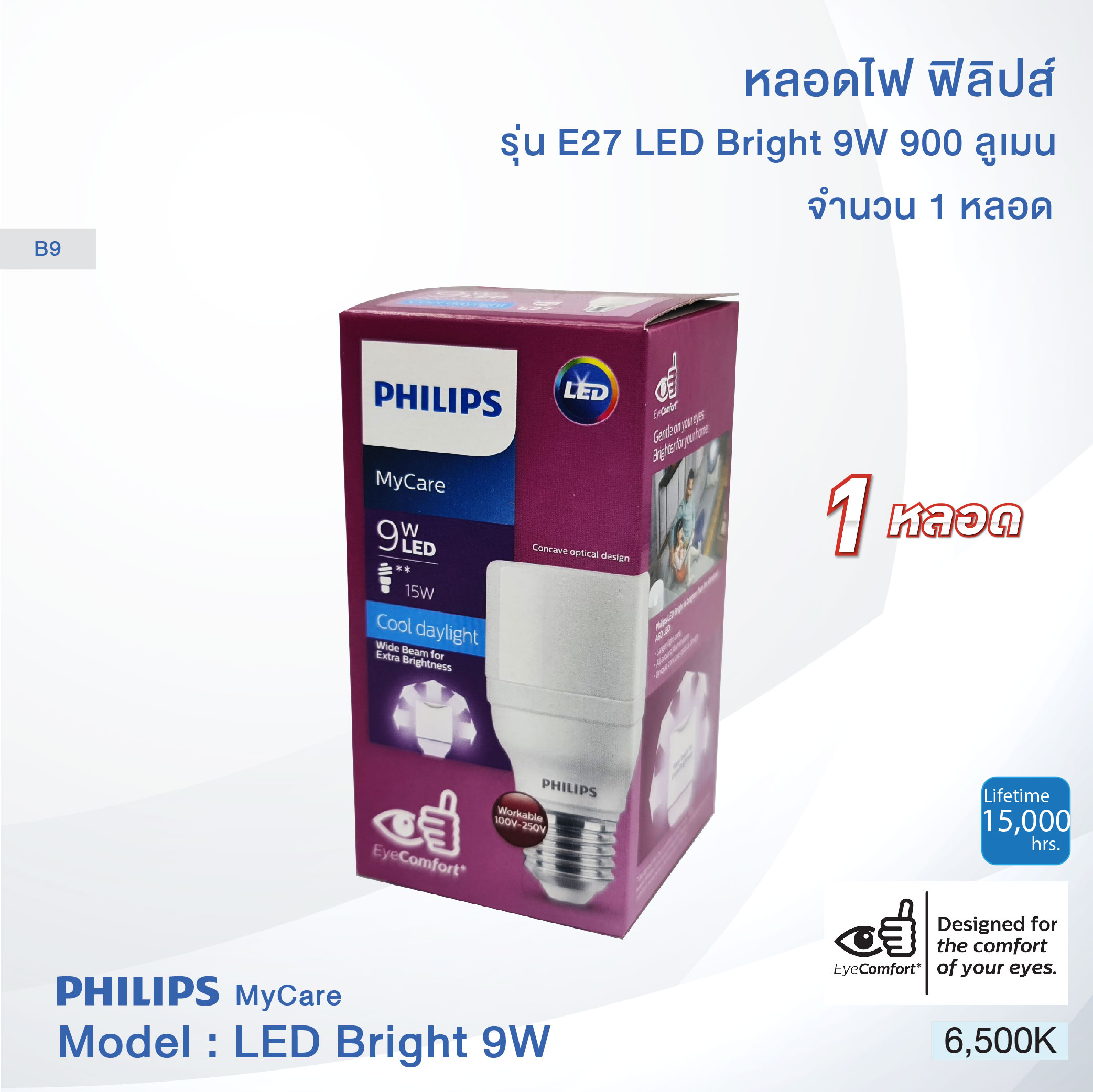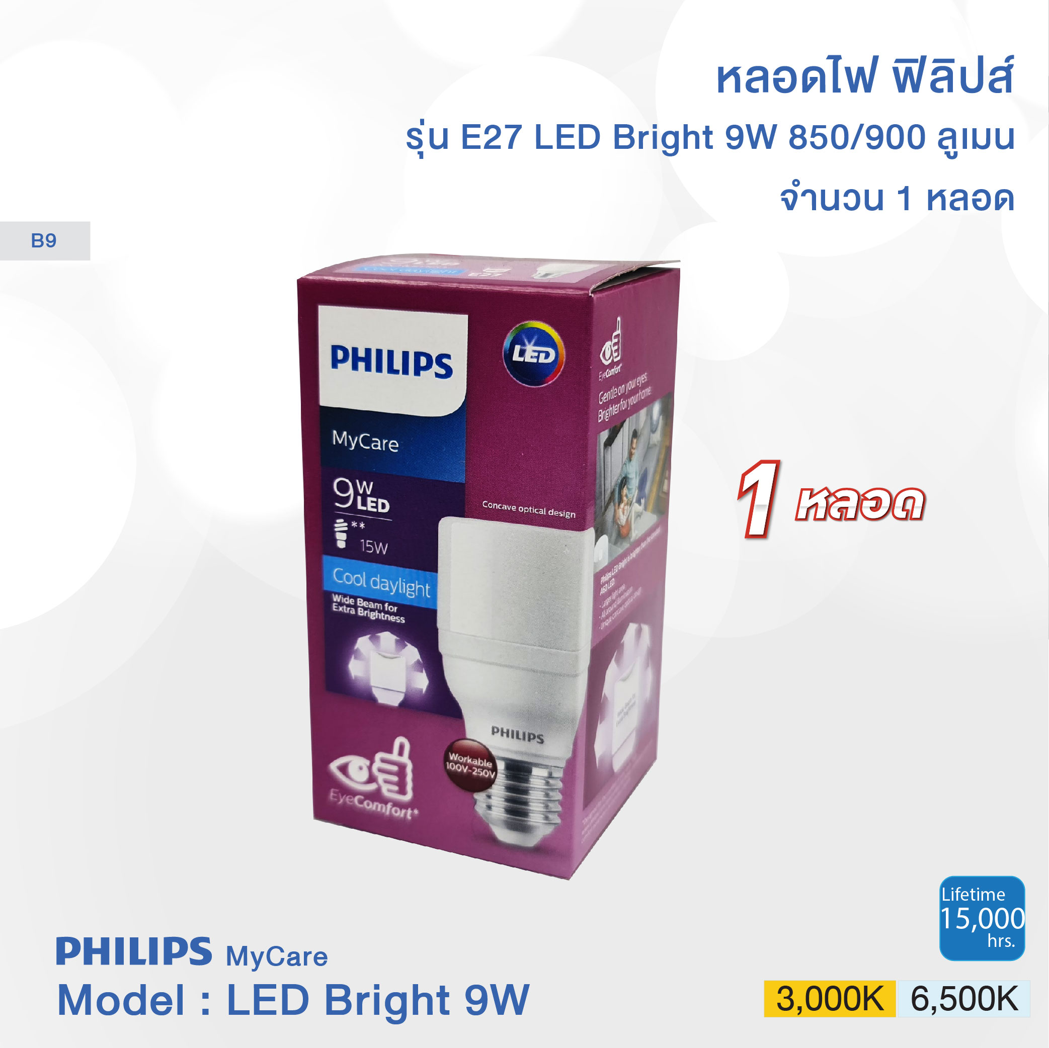 (ฟิลิปส์ หลอดไฟ ชนิดหลอดบัล์บ 9W ขั้วE27 ทรงT70 แสง วอร์ม/ขาว รุ่น MyCare)