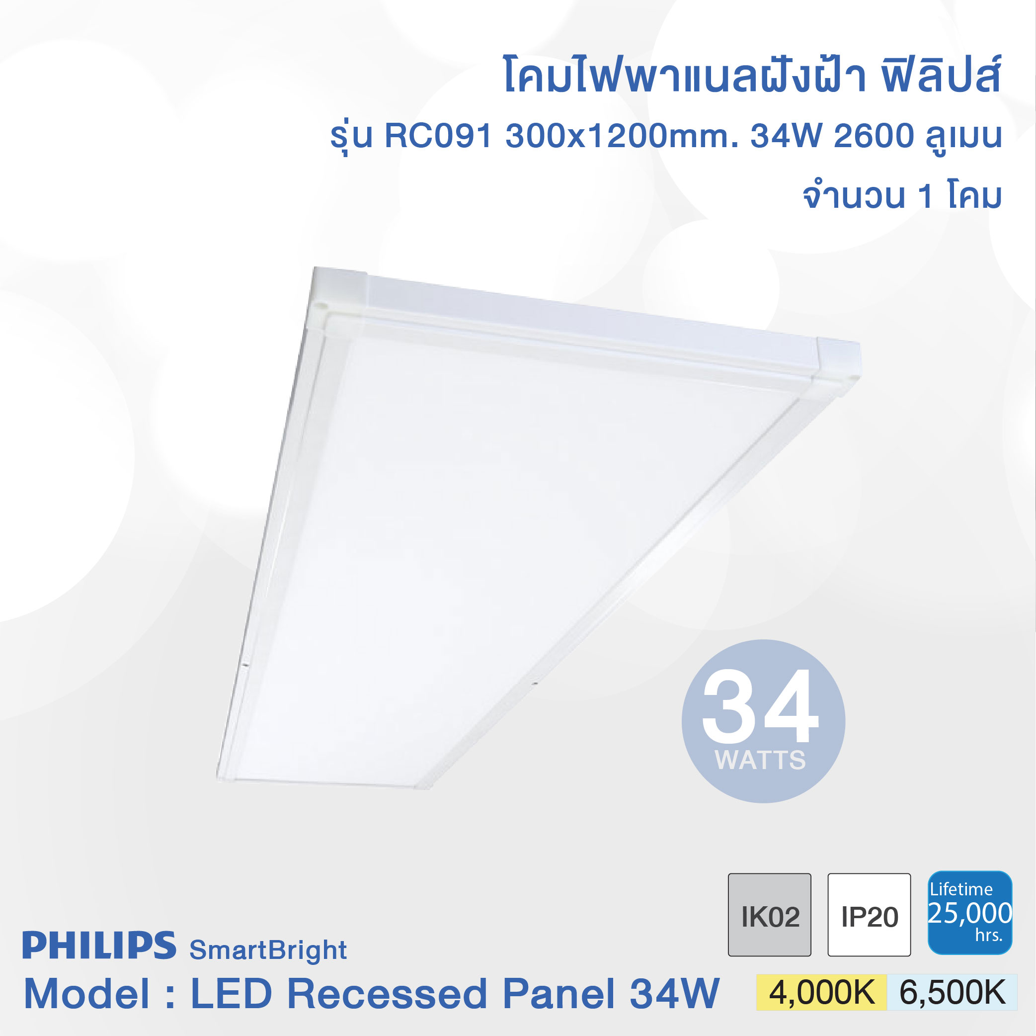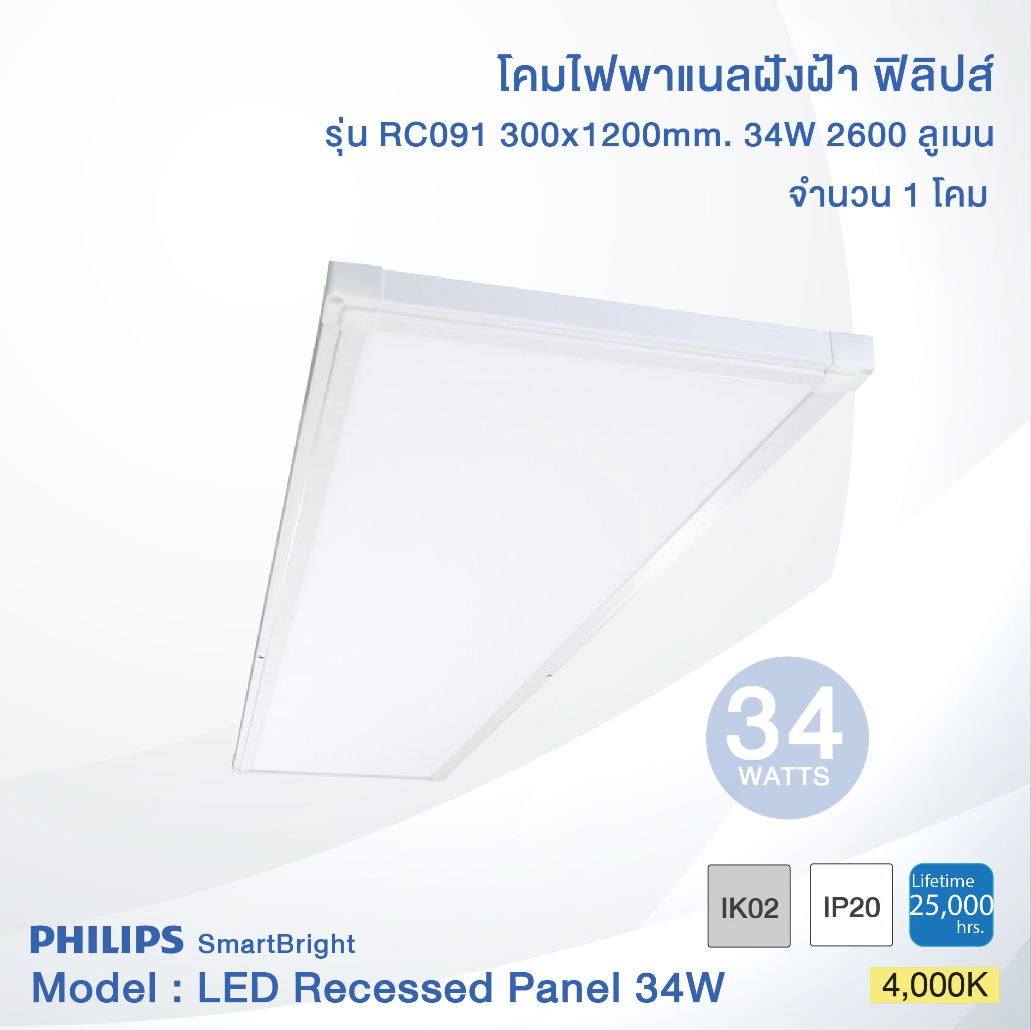 Philips SmartBright LED Slim Panel Light RC091 29W size (30×120 cm.) (ฟิลิปส์ โคมไฟฝังฝ้า สมาร์ทไบร์ท แอลอีดี สลิม พาแนล RC091 29วัตต์ ขนาด 30×120 ซม.)