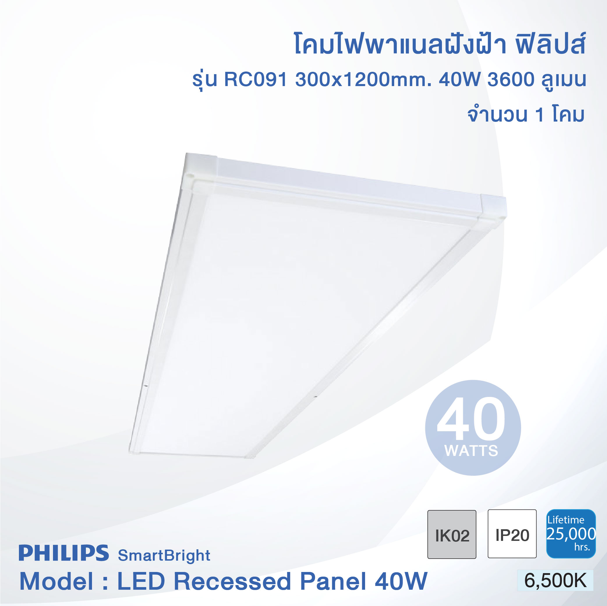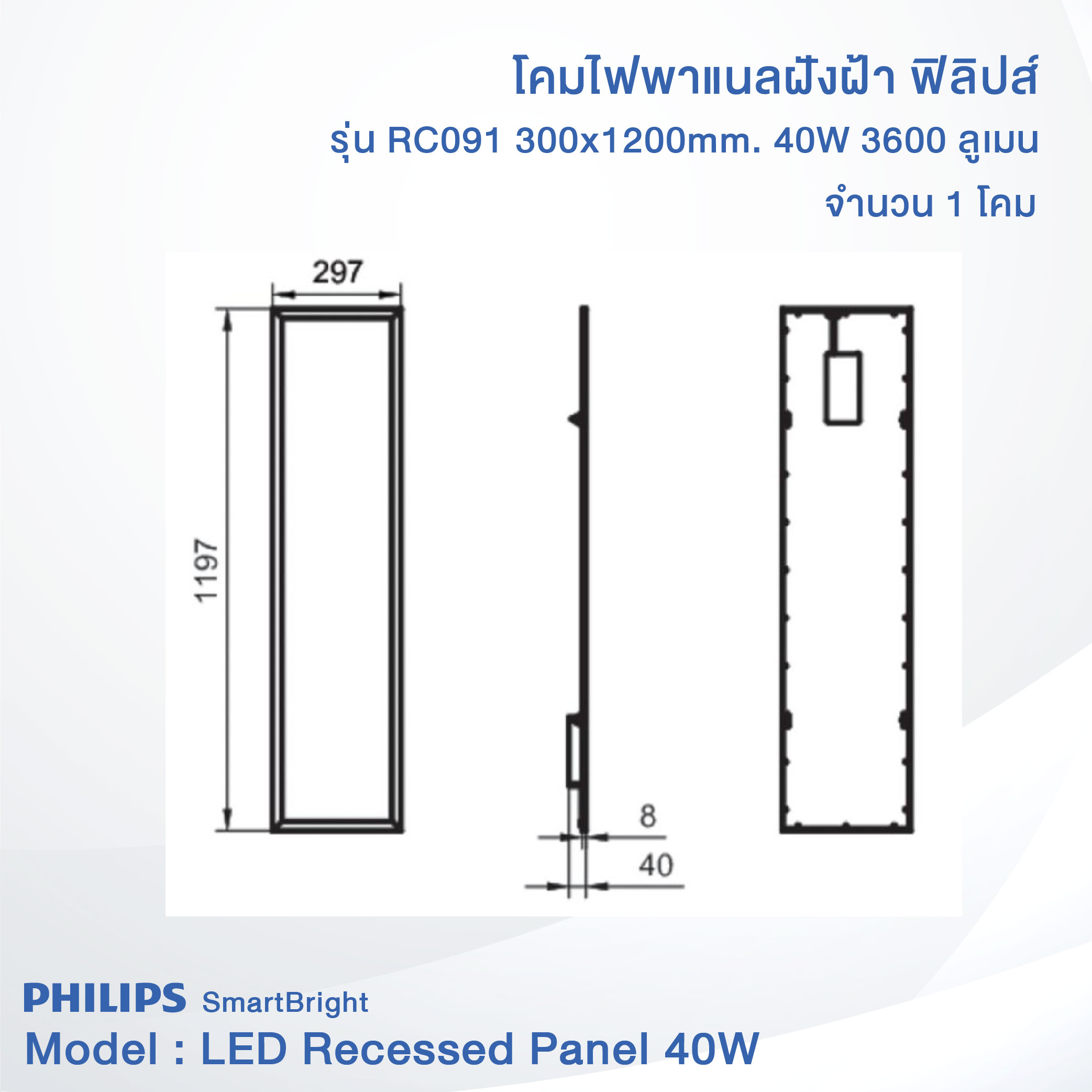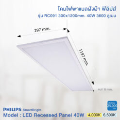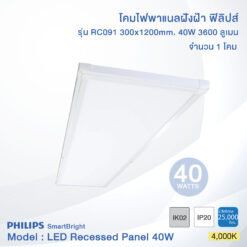 Philips SmartBright LED Slim Panel Light  RC091 40W size (30×120 cm.) (ฟิลิปส์ โคมไฟฝังฝ้า สมาร์ทไบร์ท แอลอีดี สลิม พาแนล RC091 40วัตต์ ขนาด 30×120 ซม.)