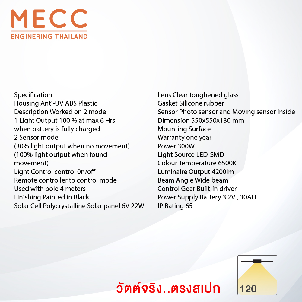 Solar Post Top Light โคมไฟหัวเสาโซล่าเซล 300W 6500K