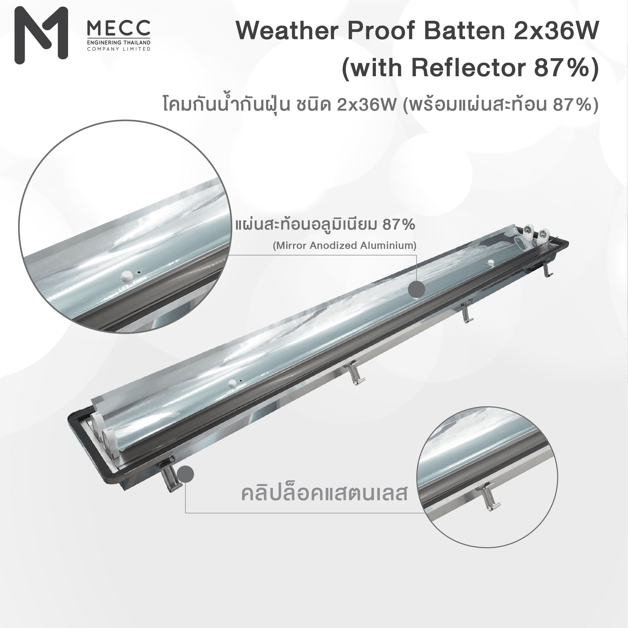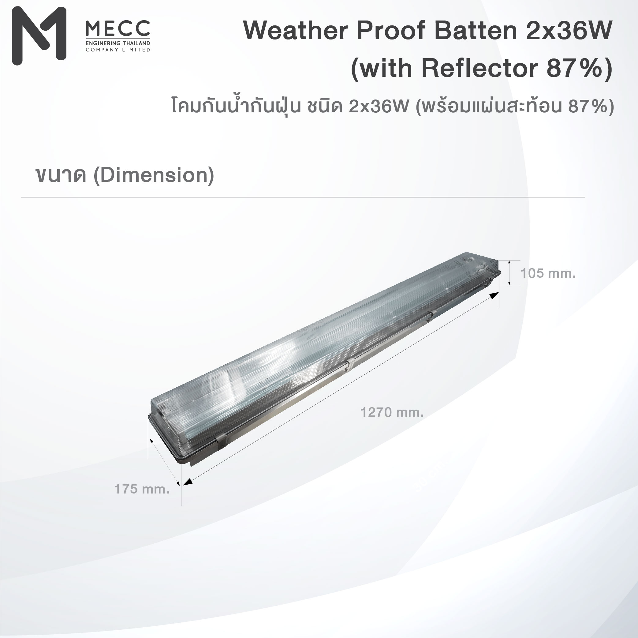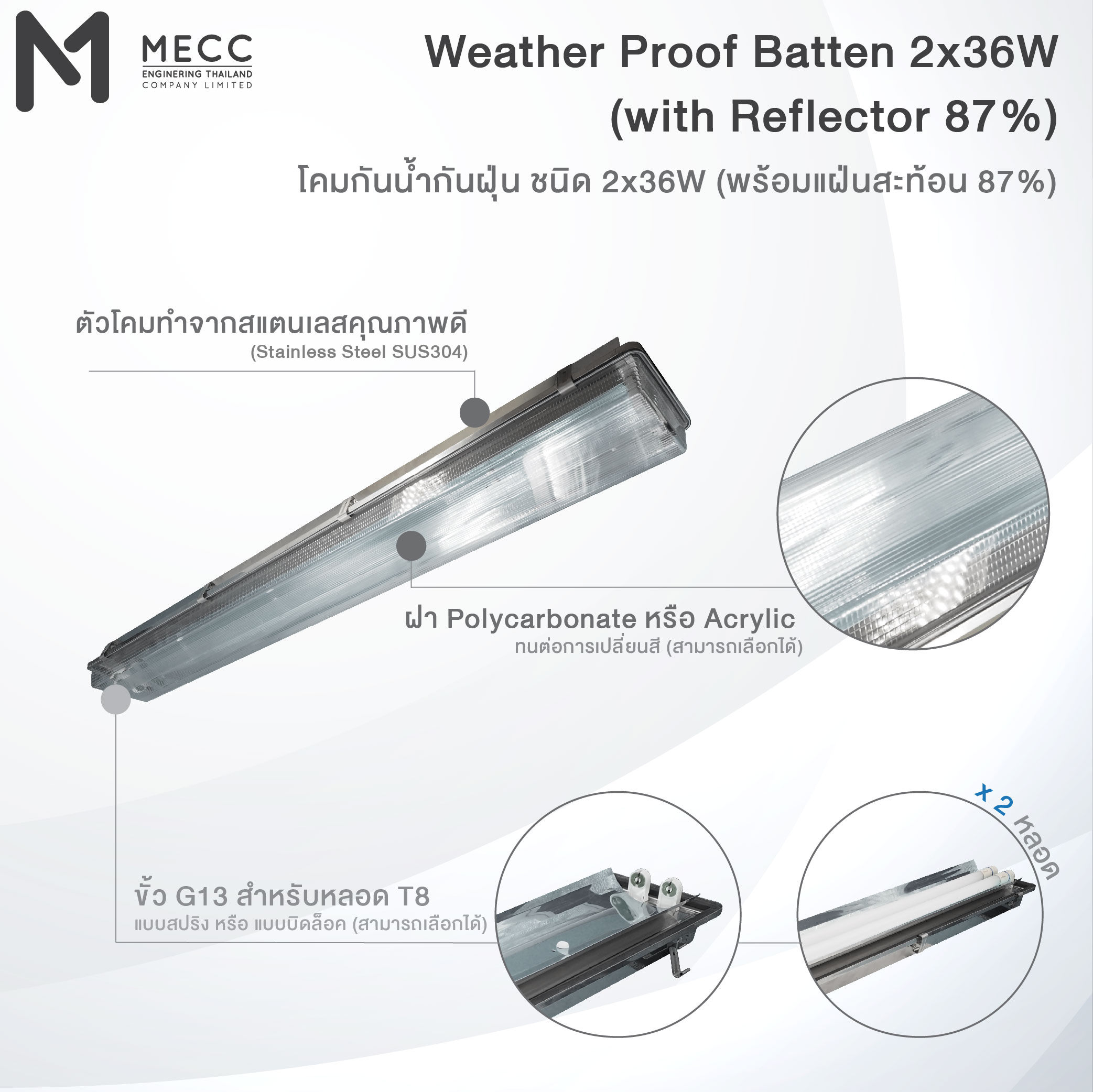 (โคมกันน้ำกันฝุ่น ตัวถังแสตนเลส ฝาครอบโพลีคาร์บอนเนต พร้อมแผ่นสะท้อนแสงอลูมิเนียม รุ่น 2x36W ยาว 1200มม.)